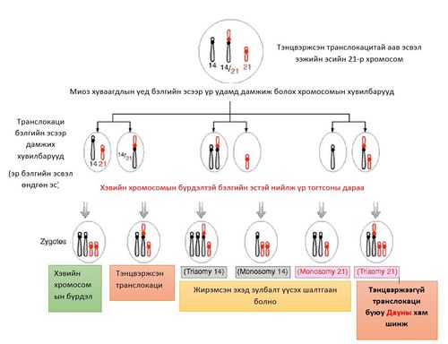 Дауны хам шинж тэр дундаа транслокациас болж үүсдэг Дауны хам шинжийн тохиолдлын тухайд: